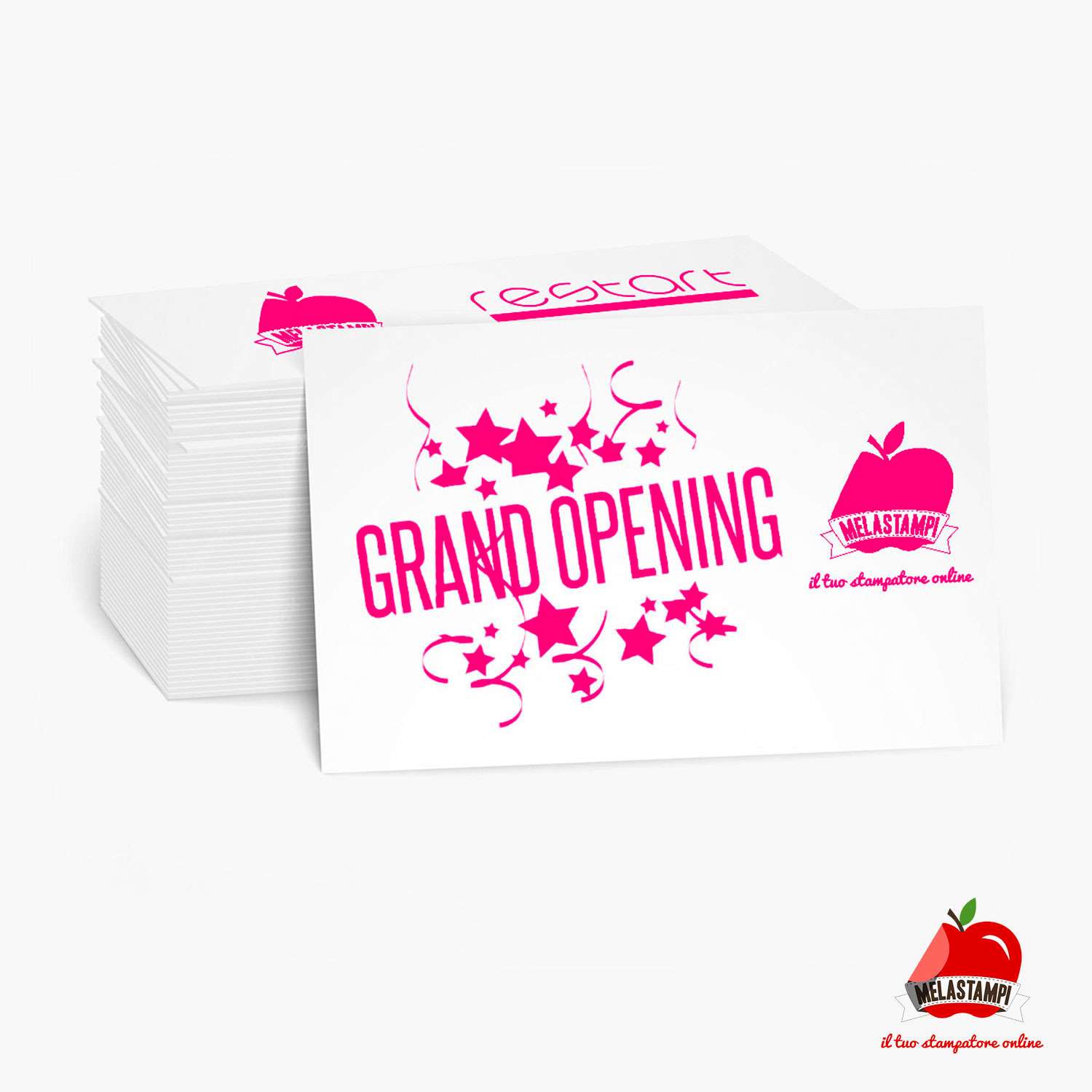 Melastampi a differenza dei competitor permette di ordinare un numero minimo di cartoline di soli 20 pezzi, ideale nel caso di invito anche per piccoli eventi. Approfitta inoltre delle possibilità che ti offre Melastampi con il servizio di multisoggetto, una soluzione semplice e comoda per realizzare le tue svariate idee.
