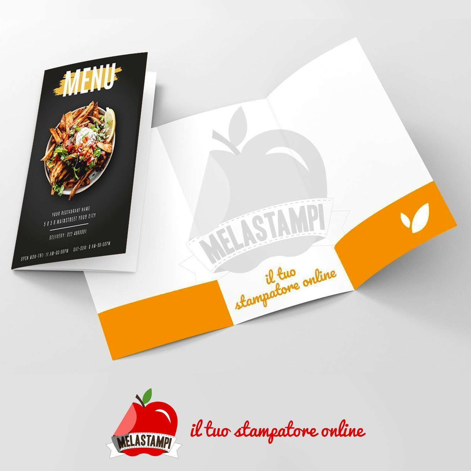 Grazie ad un'ampia scelta di materiali e formati personalizzabili, Melastampi renderà il menù del tuo ristorante uno strumento indispensabile. Puoi scegliere tra diverse modalità di piega: 2 ante, a portafoglio, a finestra.